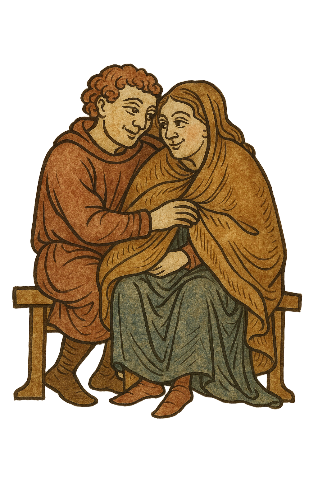 Old Bede bows his head slightly, the gesture of a man who knows the weight of being useful. Smiling, he touches his student's shoulder.