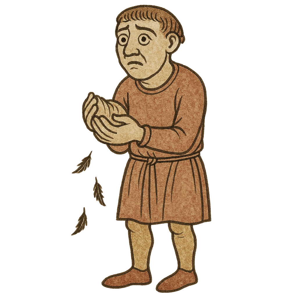At the front of the hall, the young monk has stopped trying to be heard. His cheeks and now his neck flush scarlet. The thegn frowns. The crowd debates: did Tom's mum make him eat the sparrows he caught as a child, or did he sneak them behind the midden, a guilty snack? Someone's child is crying because they think all the sparrows might have been eaten, and the harp player has started playing again, though nobody asked him to.